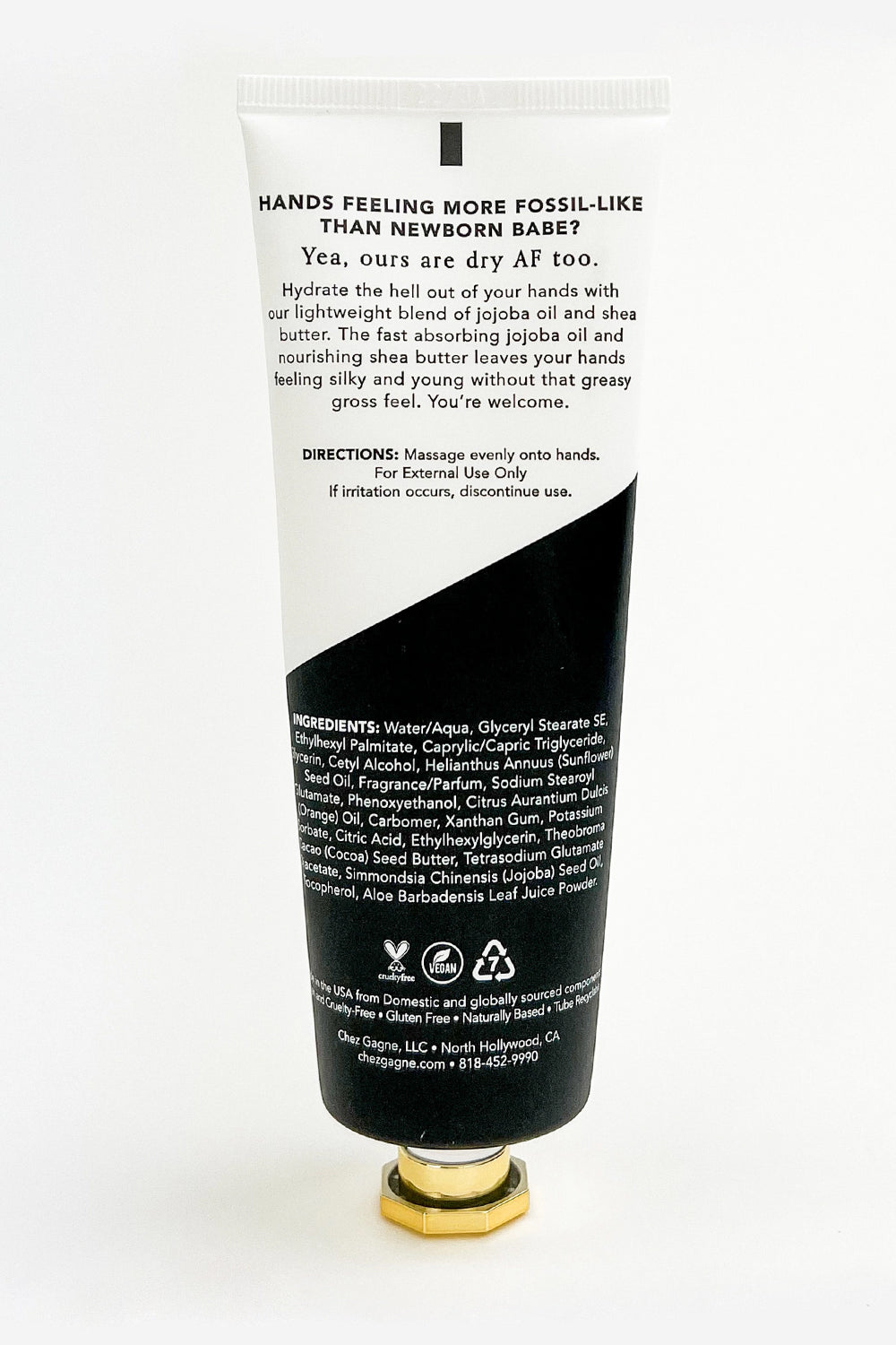 Forget the granny hands – this vegan hand crème keeps yours soft and hydrated. Cocoa butter and jojoba oil deliver serious moisture without the greasy mess, while a cheerful orange-vanilla scent makes every application feel like a treat. Made in the USA, cruelty-free, and packaged in a recyclable tube with a gold cap. Perfect for gift-giving or everyday self-care.