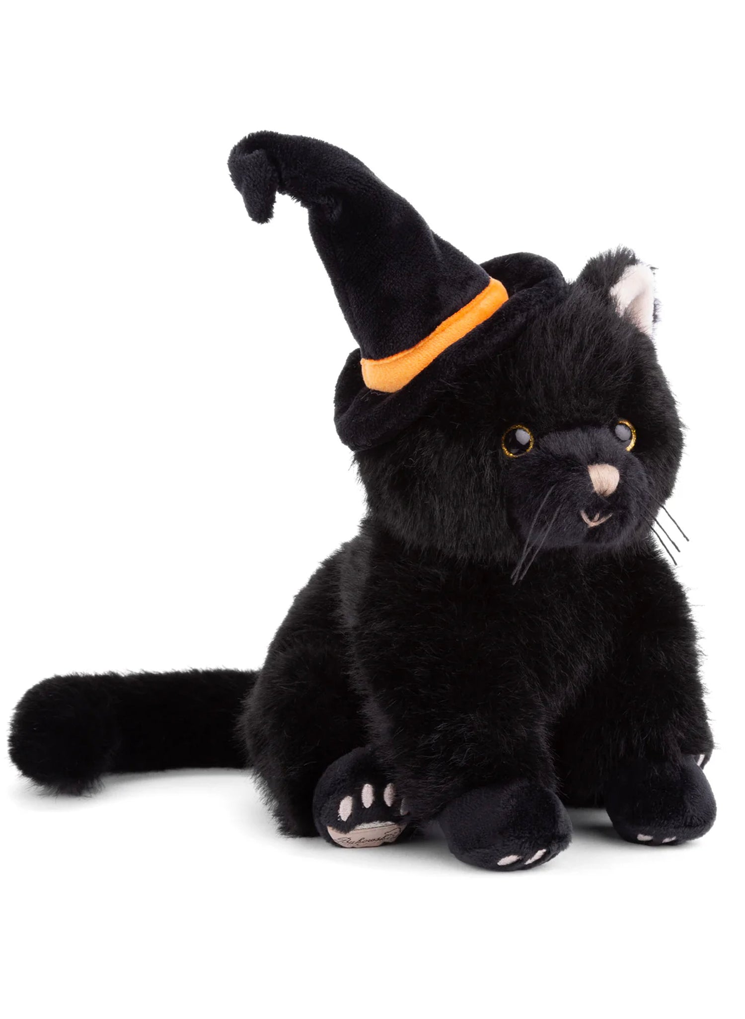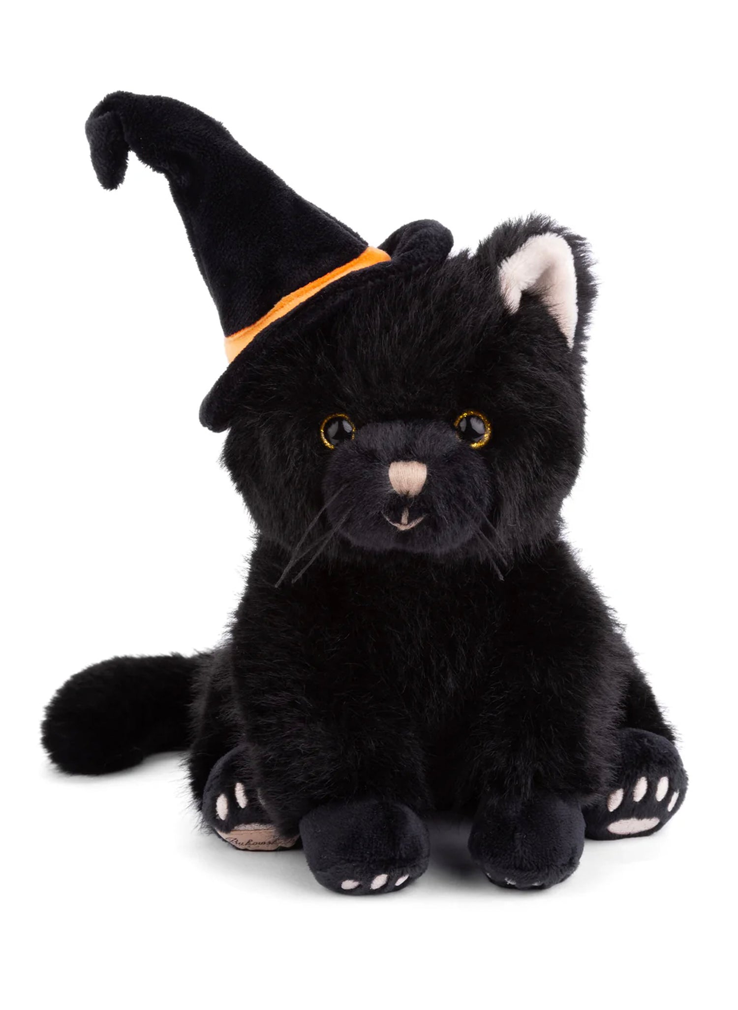 Introducing Bambo, your new plush pal with serious Halloween charm! This cuddly companion features velvety black fur, gleaming golden eyes, and an endearing stitched pink nose that'll make you smile. What really sets Bambo apart? A striking black witch's hat crowned with a vibrant orange band—pure festive flair. Whether you're celebrating spooky season or just need a year-round snuggle buddy, this 10-inch softie brings whimsical magic to any moment. Bambo's the perfect blend of adorable and enchanting!