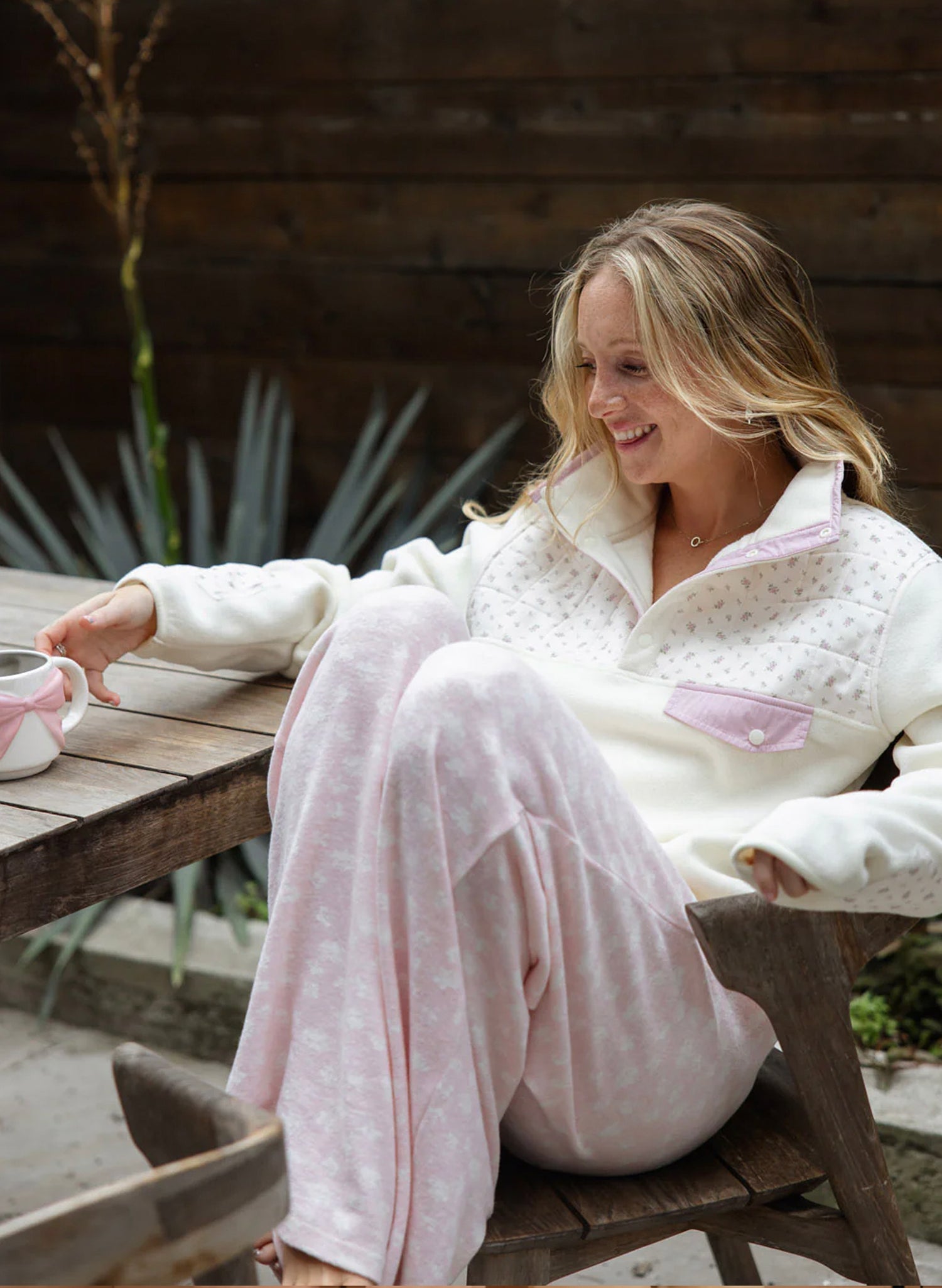 The Ditsy Daisy Mia Pajama Bottoms bring bedtime to life with their whimsical daisy design. Cozy, fun, and brimming with personality, they turn bedtime into a delightful ritual. Drift off to dreamland in style. Pair with the Ditsy Daisy Mia Pajama Top for the perfect pajama combo. Made from 63% Polyester, 34% Rayon, and 3% Spandex.