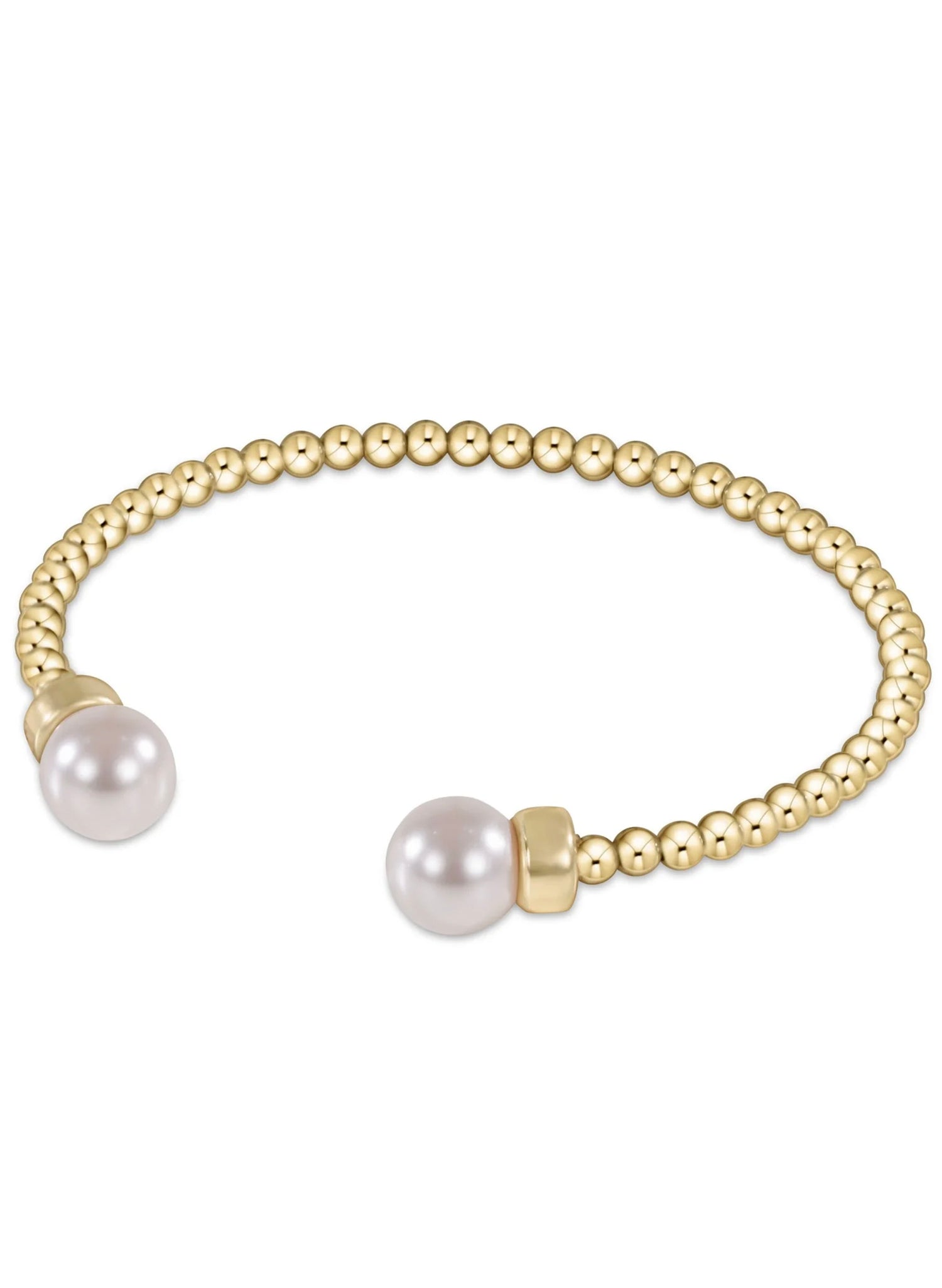 This is the cuff you've been waiting for—polished, versatile, and built to keep up with your lifestyle. Strung with gleaming 3mm gold-filled beads and accented with a radiant crystal pearl, it's flexible enough to move with you yet structured enough to hold its shape. Wear it everywhere: in the shower, to the gym, to bed—it's designed for worry-free living. Fits wrists up to 7" and pairs perfectly with all your other bracelets.
