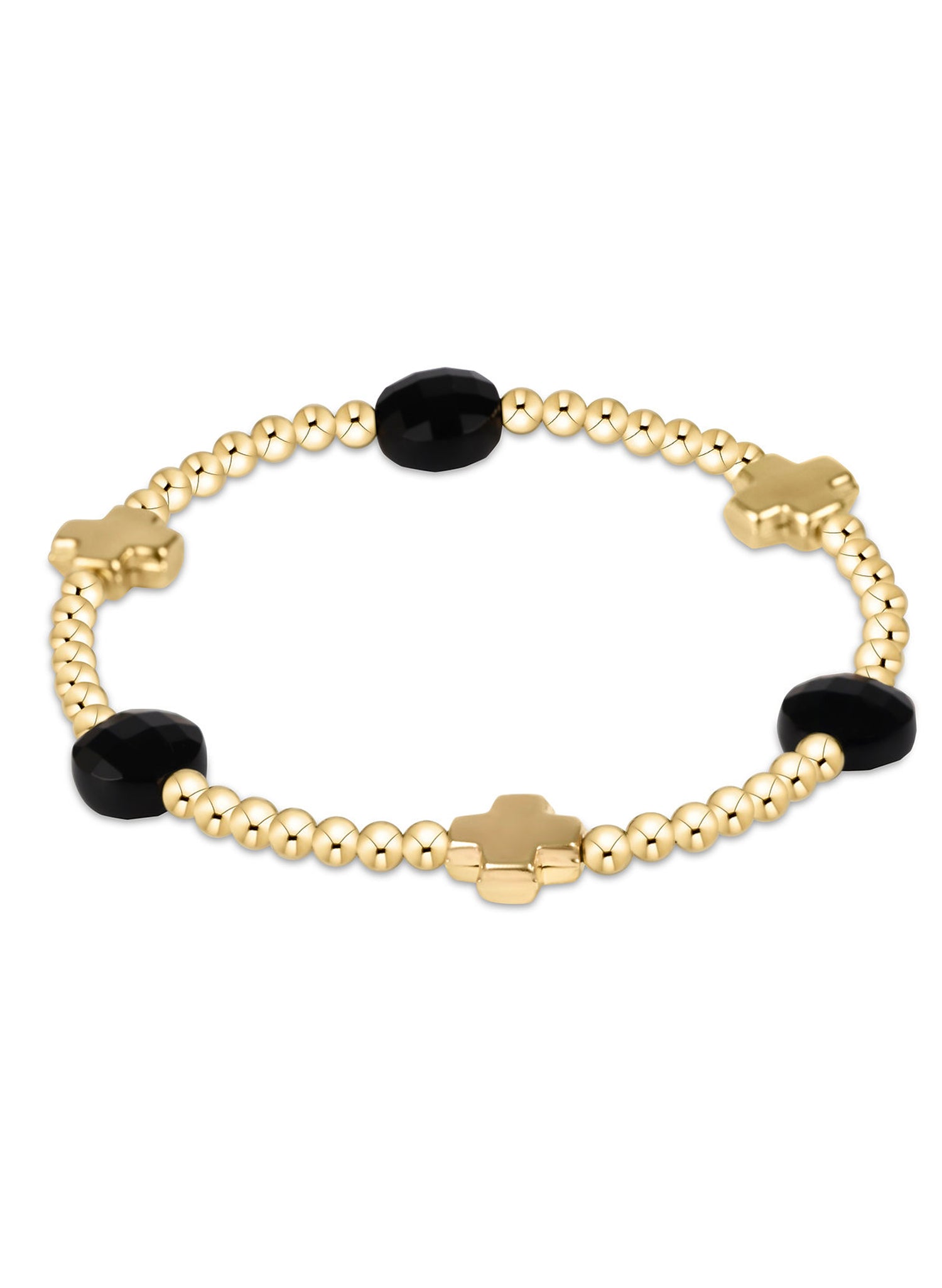 Enewton’s Signature Cross Admire bracelet shines with 3mm 14kt gold-filled beads, a gold-filled signature cross, and sparkling faceted onyx. Hand-beaded on stretchy, high-performance elastic, it’s easy to slip on and off your wrist. Sized at a comfy 6.25", it’s perfect for worry-free wear—sleep, shower, and sweat with no fuss! Plus, it stacks effortlessly with all your favorite bracelets for a playful look.