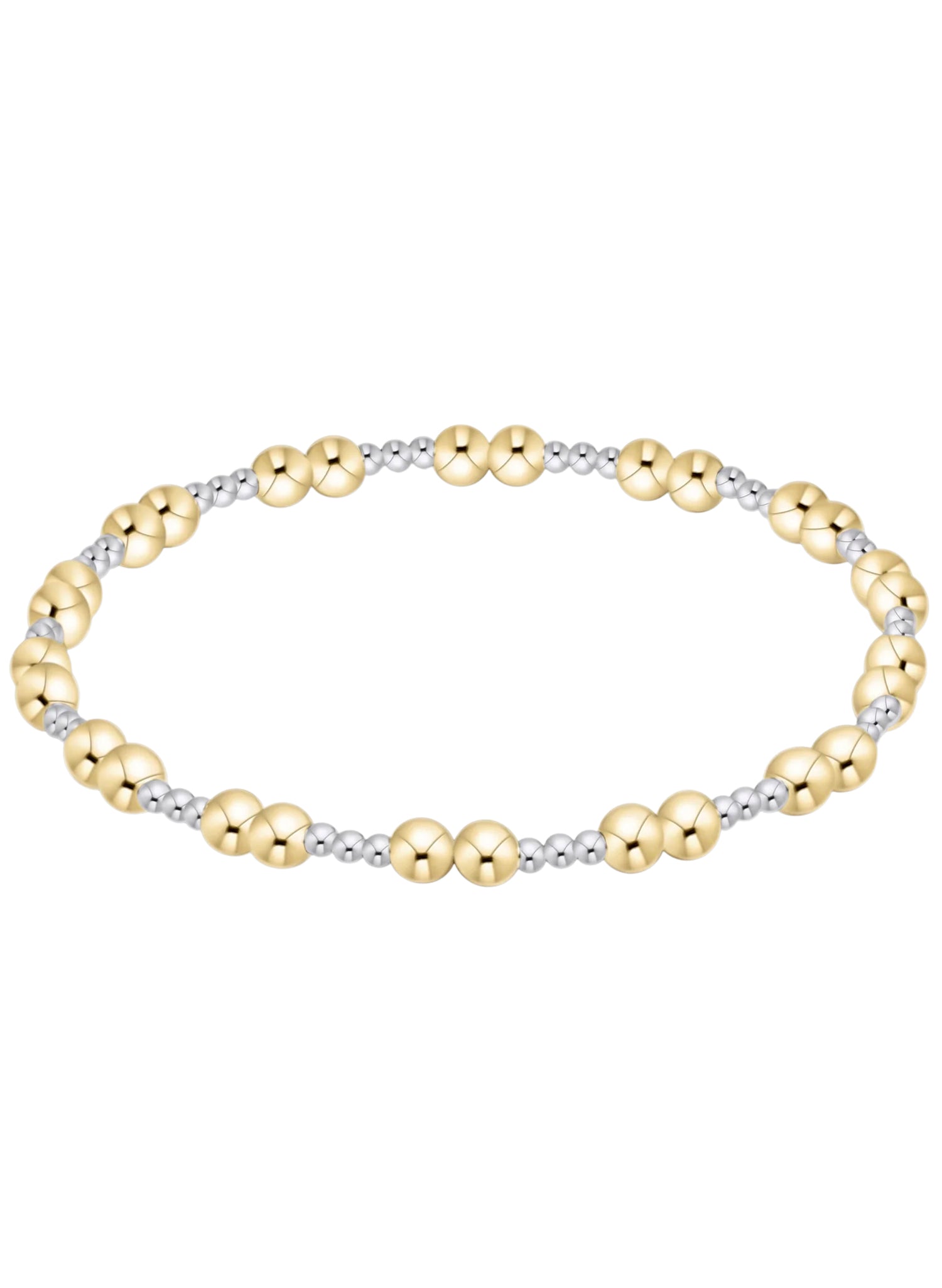 Discover the versatility of our Together Mixed Metal 4mm Bracelet, featuring a stunning combination of 2mm sterling silver and 4mm 14kt gold-filled beads. Hand-beaded on durable elastic, this bracelet stretches comfortably for effortless on-and-off wear. Built for everyday life—wear it while you sleep, shower, and sweat without worry. Available in standard (6.25") or extended (7.25") sizes, it pairs beautifully with other bracelets for a personalized stack.