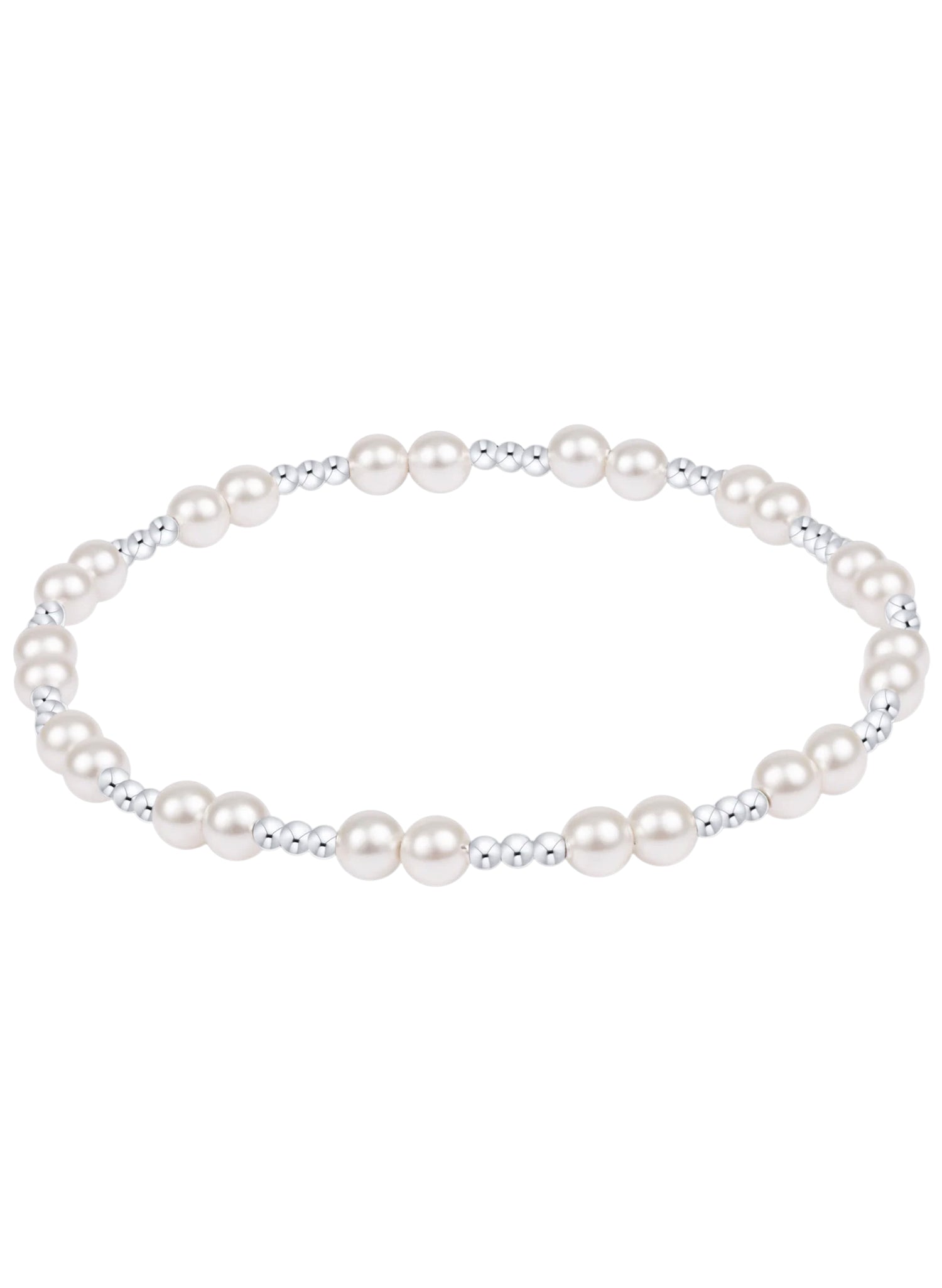 Crafted with lustrous 4mm pearls and delicate 2mm sterling silver beads, this enewton bracelet features our signature together pattern. Hand-beaded on premium elastic, it stretches comfortably over your wrist for effortless on-and-off wear. Built for everyday life—wear it while you sleep, shower, and sweat without worry. At 6.25" in standard size, it layers beautifully with other bracelets for a personalized look.