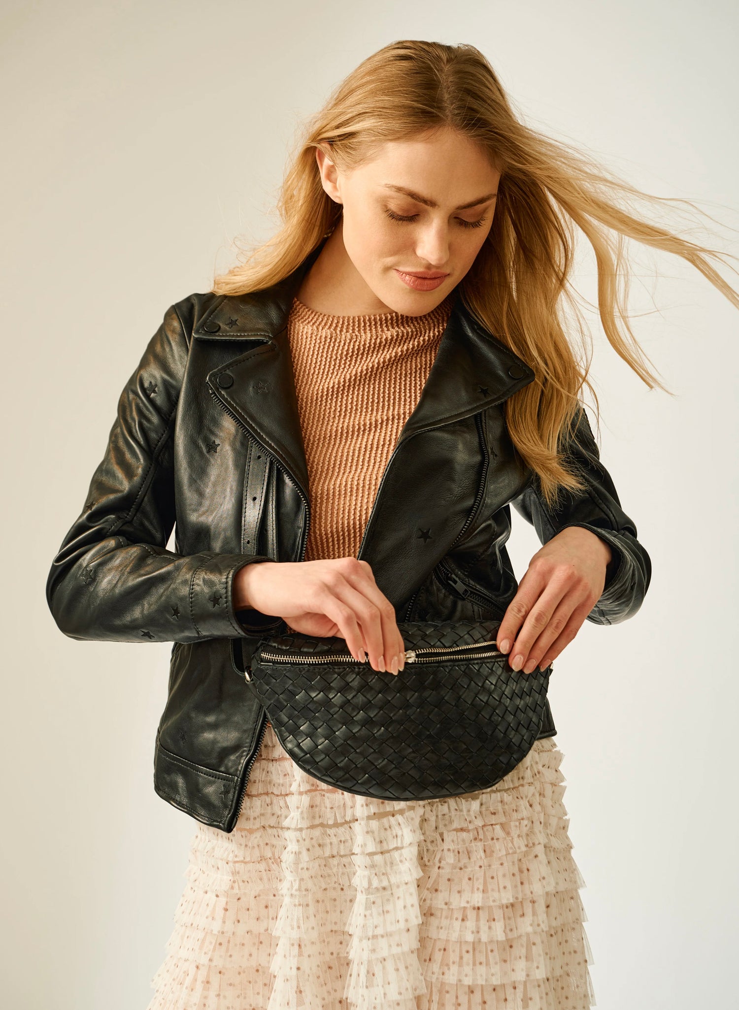 Slip on the Parker Crossbody in Black and instantly upgrade your everyday style. This charming bag features a beautiful woven texture and rich vegetable-tanned leather that whispers sophistication with every wear. Slung across your shoulder, it's the perfect companion for everything from coffee runs to night-outs—effortlessly chic and wonderfully practical.