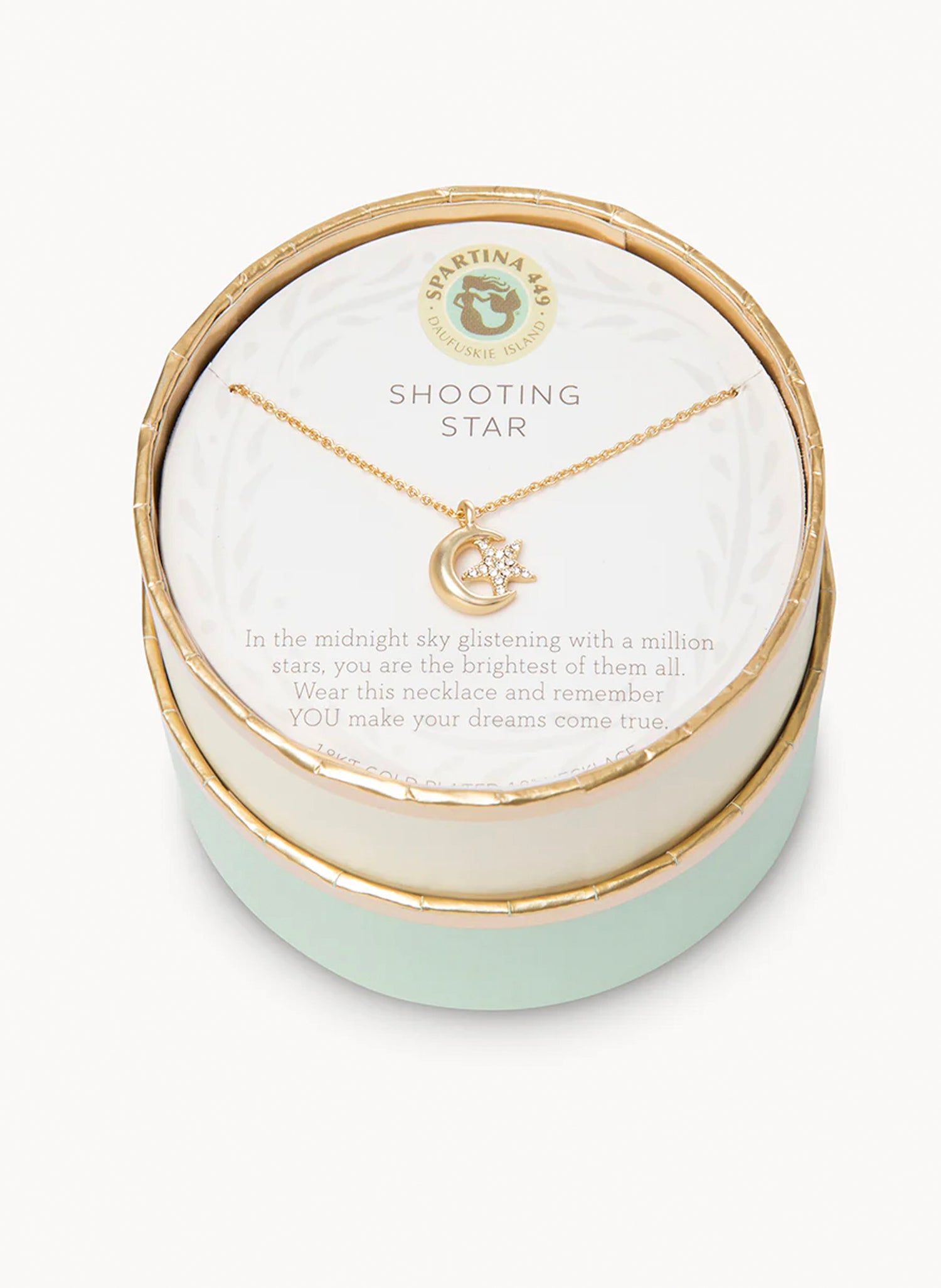 Let your inner dreamer shine with the Sea La Vie Necklace, a whimsical piece designed to inspire you daily. This charming 16"-18" adjustable necklace features a celestial moon star pendant finished in 18kt matte gold plating, secured with a reliable lobster closure. Perfect for stargazers and wish-makers alike, it arrives beautifully packaged with an uplifting message that celebrates your unique sparkle and reminds you that you're the author of your own magical story. A delightful reminder that dreams aren't just for nighttime.