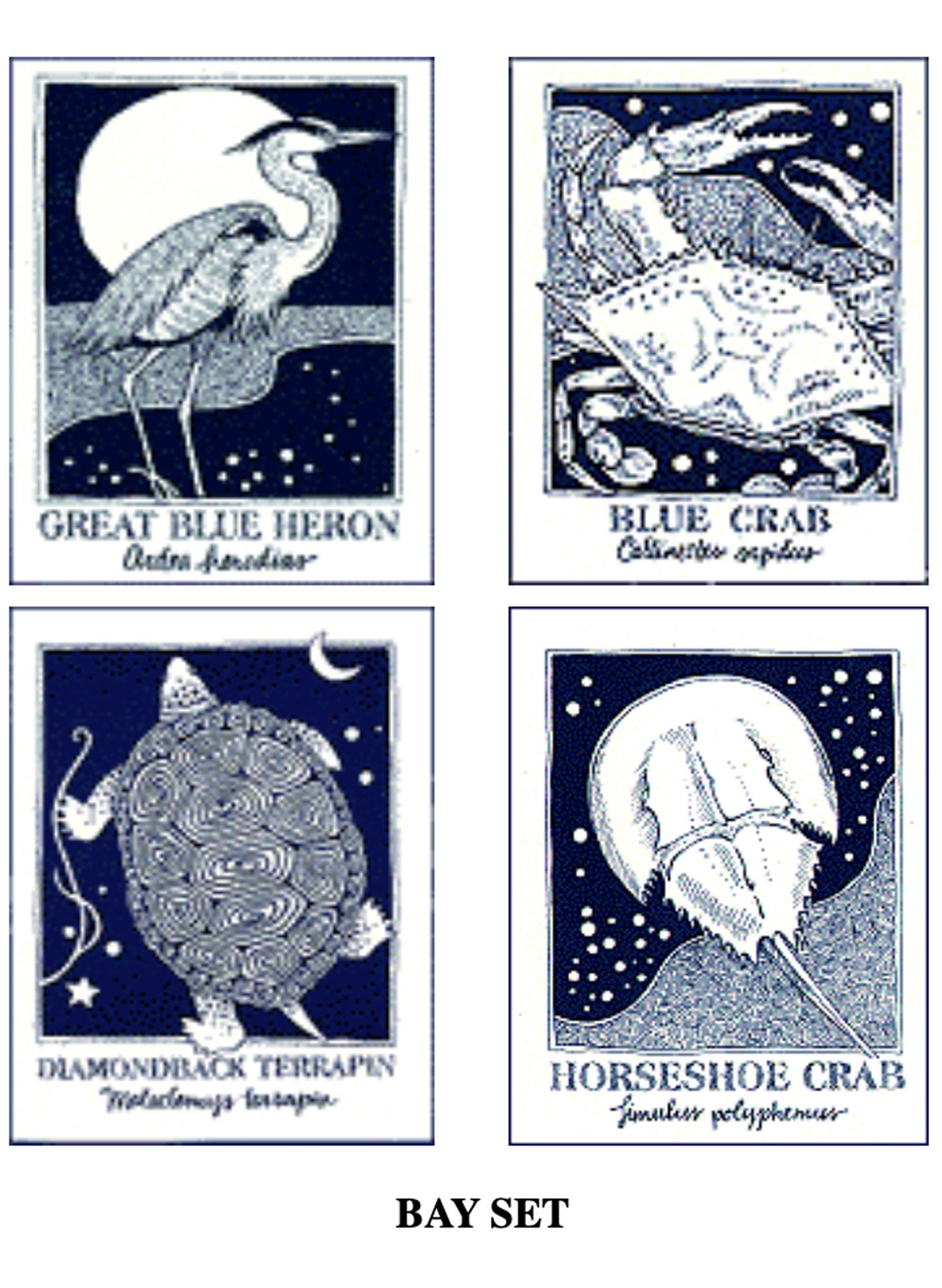 This set features 4 unique cards with envelopes, showcasing one each of: great blue heron, blue crab, diamondback terrapin, and horseshoe crab. Each card is blank inside, ready for your personal message. On the back, discover fun environmental facts about how these creatures connect with the Shore. Illustrated with charm by Jersey Shore artist Leslee Ganss, these cards bring a splash of coastal magic to your notes!