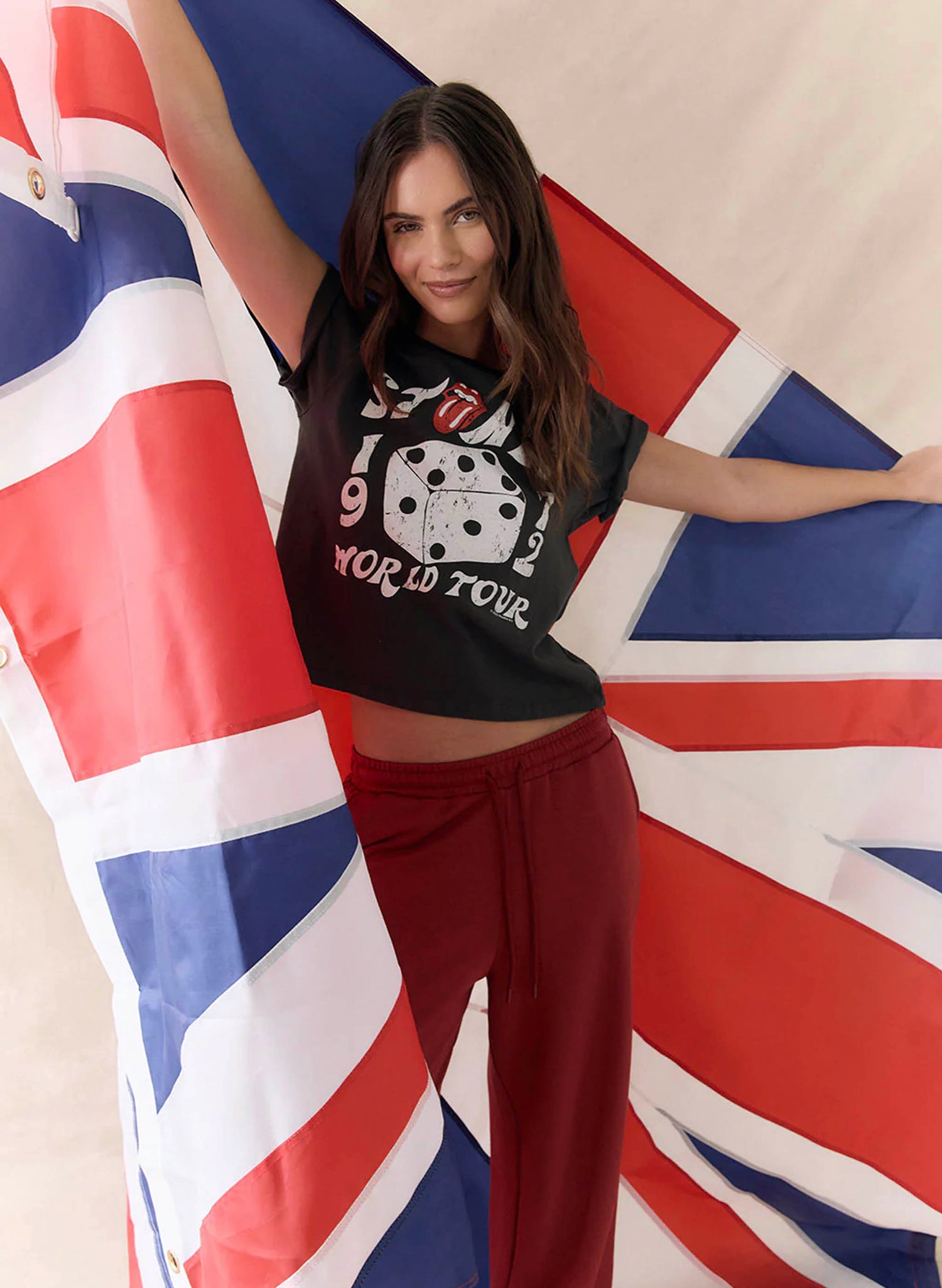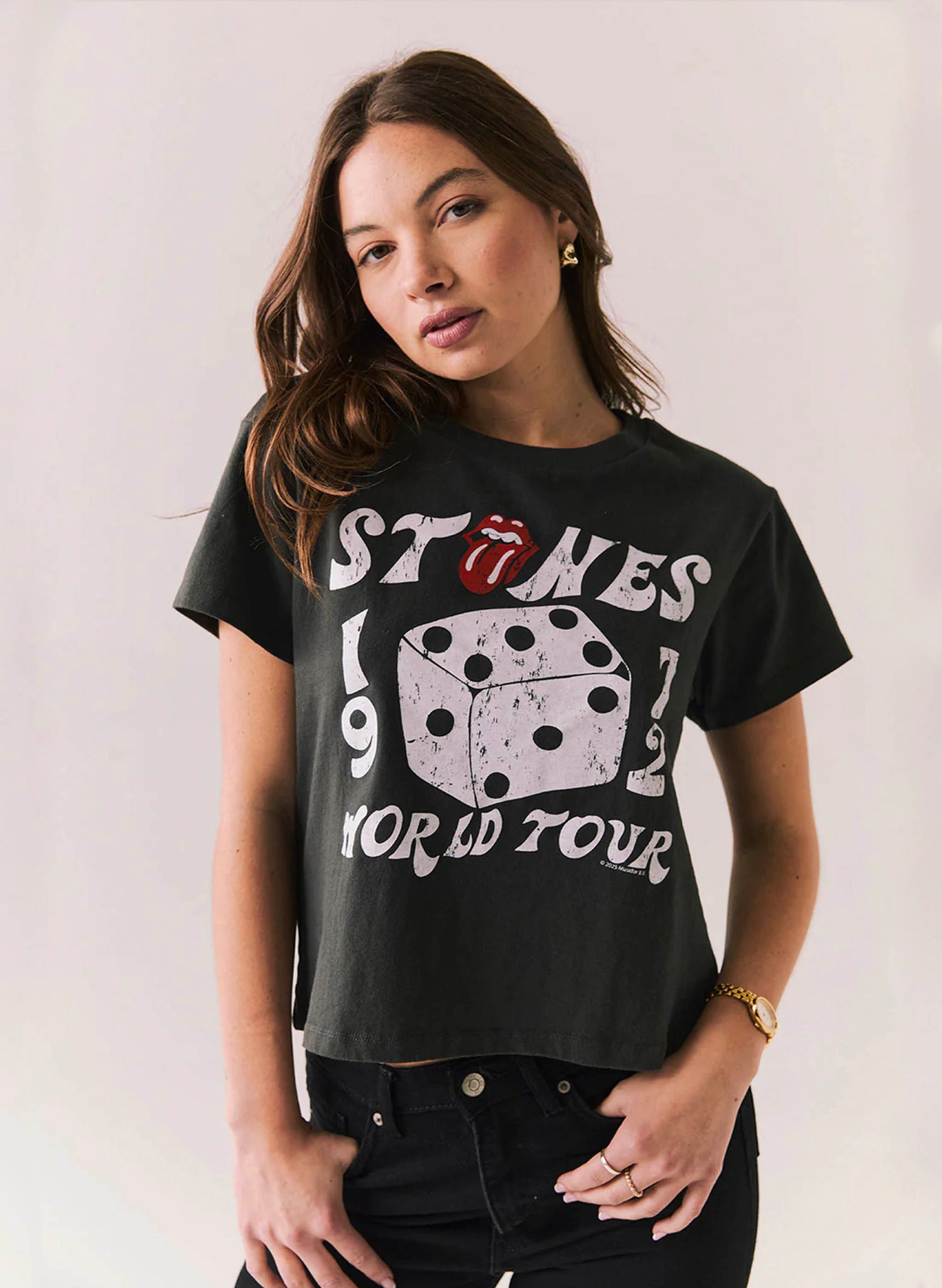 The Rolling Stones 1972 Dice Tour Tee rocks a cool vintage vibe in sleek black cotton crop style. Showcasing classic lips-and-dice graphics, it’s perfect for rocking out, late-night adventures, or just turning heads anywhere. Match it with leather or denim for a look that’s pure rock ’n’ roll fun. Fabric Content: 100% Cotton