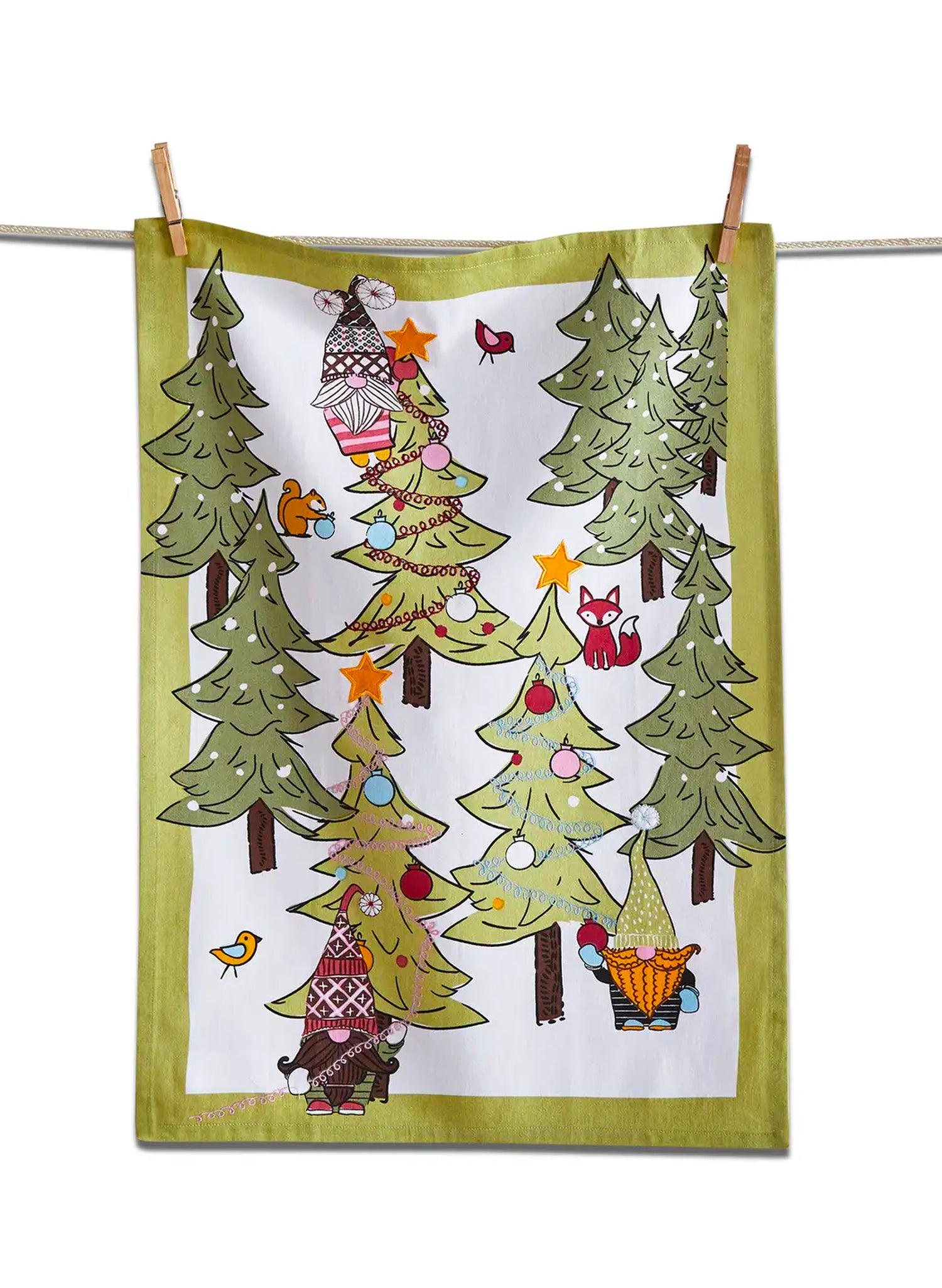 Woodlands Gnomies & Furry Friends Dishtowel brings festive charm to your kitchen. Made from 100% cotton, this 26" x 18" towel offers excellent absorbency and durability for everyday use. Featuring whimsical holiday designs with playful gnome motifs, it's perfect for drying dishes or adding seasonal flair to your home. Machine washable for easy care. A delightful gift idea that combines practicality with holiday spirit.